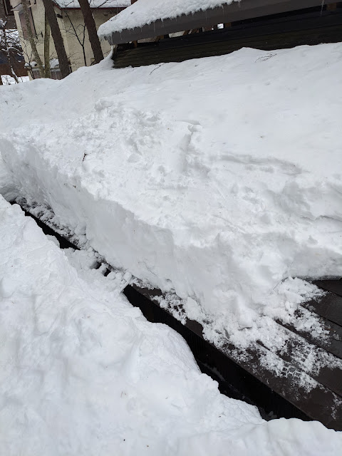 Tyle śniegu dawno nie widziałam. Ostatni raz chyba 10 lat temu w Myoko, również w Japonii. Wówczas przez miesiąc śnieg padał codziennie. Codziennie więc musieliśmy odkopywać dom spod śniegu. Często rano nie mogliśmy otworzyć drzwi, bo śnieg uniemożliwiał to. zdarzało się, że wychodziliśmy przez okno na piętrze, bo parter był cały zasypany. Jednak to dawne czasy i już traciłam nadzieję, że kiedykolwiek doświadczę podobnych opadów śniegu.